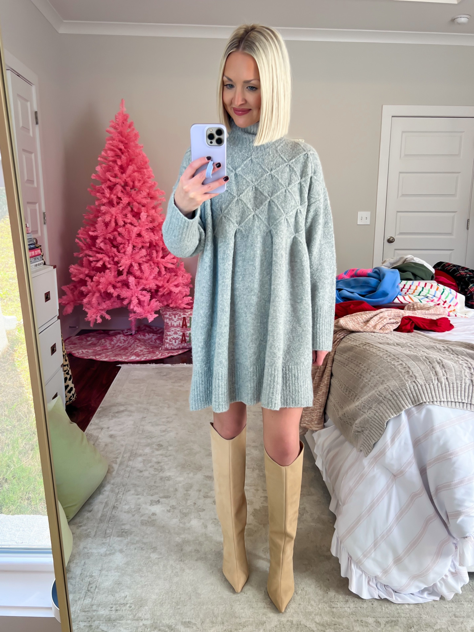 Mini Sweater Dress Over-the-Knee Boots Hearts Aflutter. Web Mixed Media.